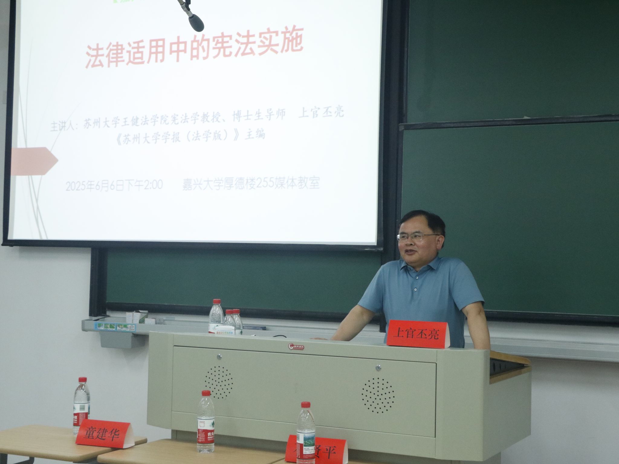6月6日下午,苏州大学二级教授、宪法学与行政法学博士生导师、《苏州大学学报(法学版)》主编上官丕亮应邀来老虎机