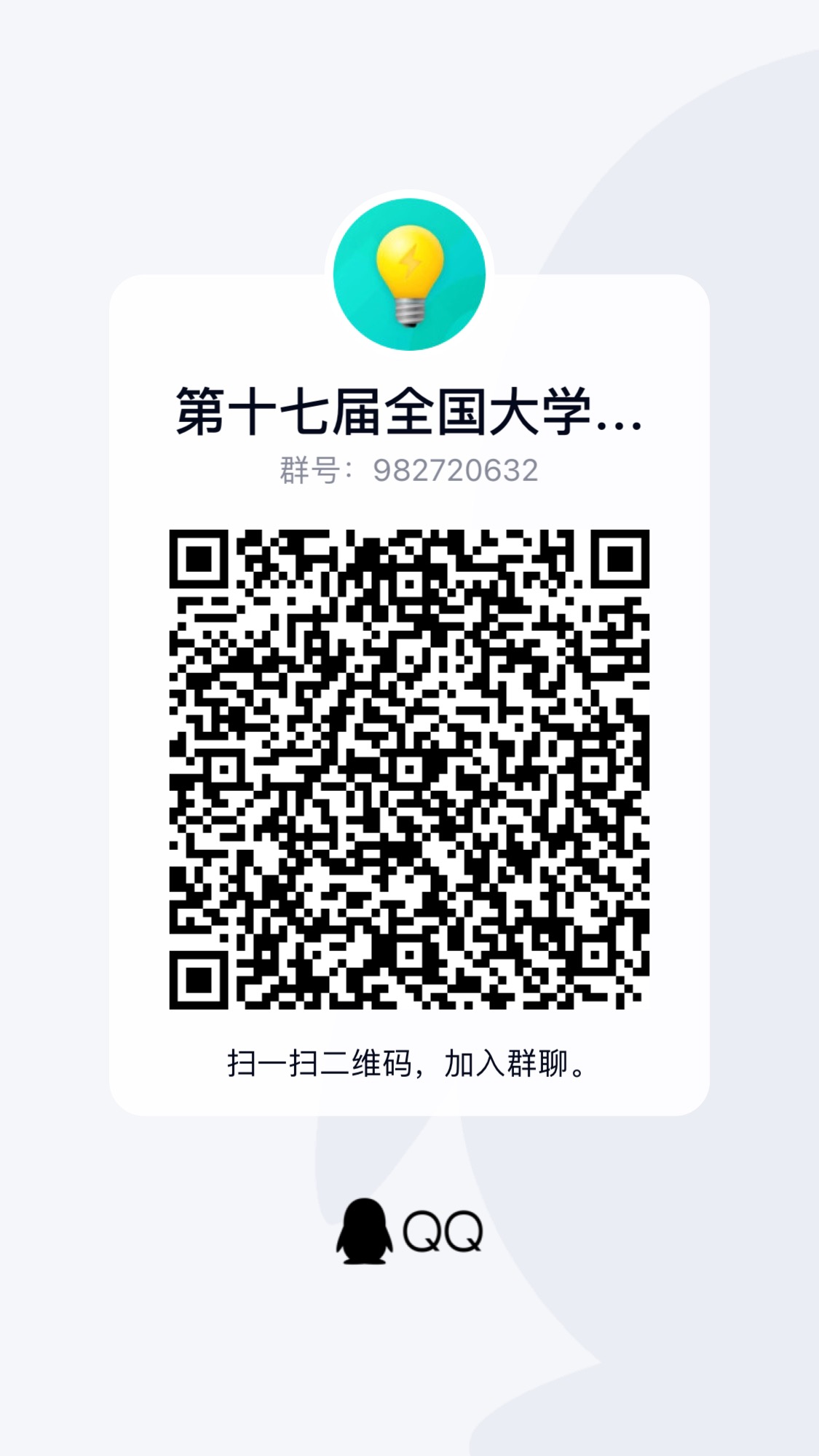 所有准备参赛学生,请及时加入竞赛QQ群:982720632,进群后可咨询、了解竞赛信息;关注竞赛动态。