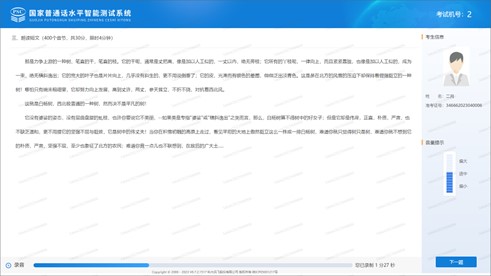 以下为国家普通话水平智能测试系统测试流程(文章下方有相关视频可下载观看):