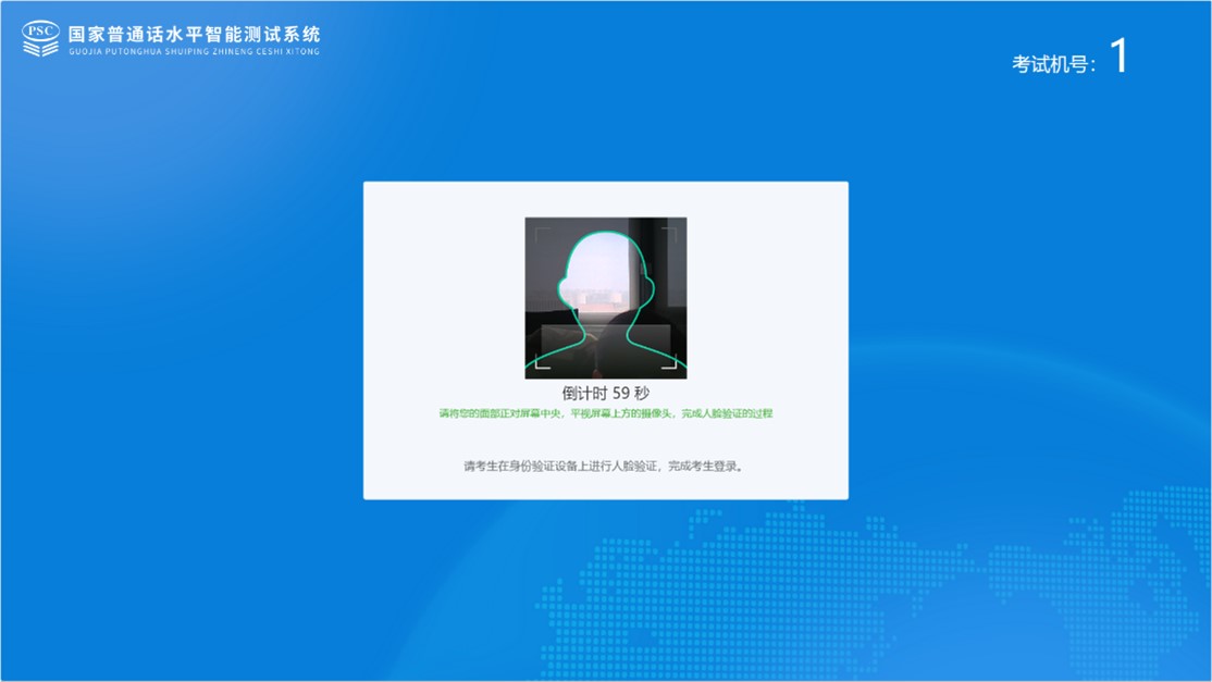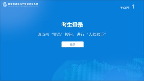 (一)考生进入测试室后,戴上耳机,鼠标点击“登录”,进入人脸验证。