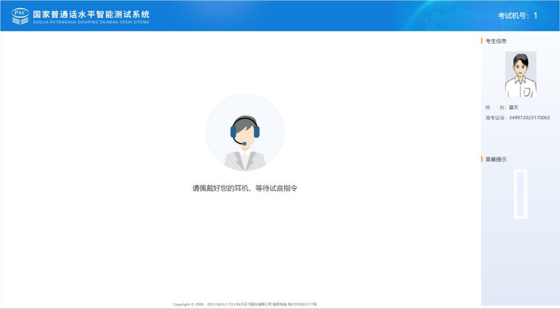 (六)试音成功,等待考场指令。需要同一批次所有考生都试音成功一起开始正式考试。