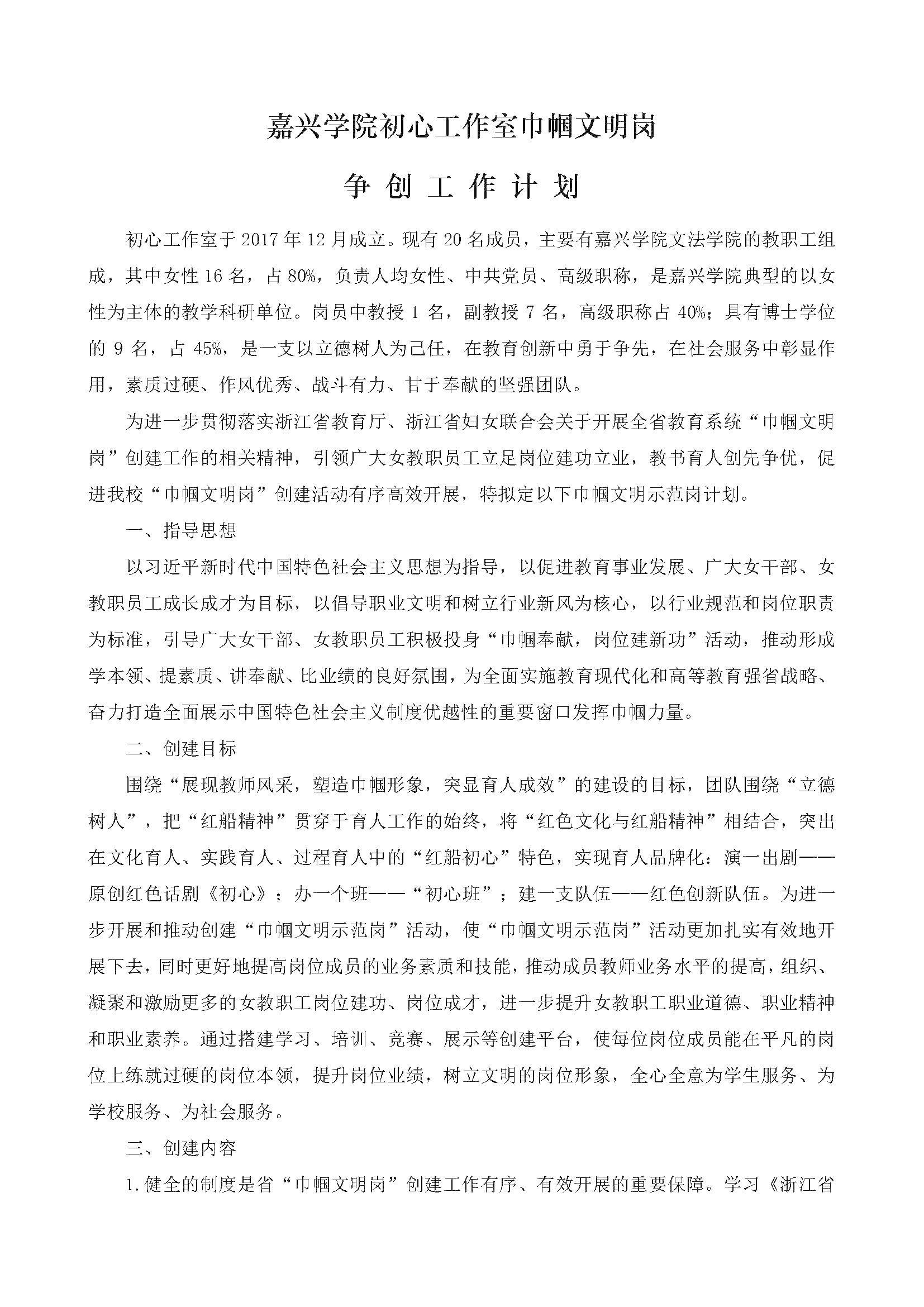 嘉兴老虎机 初心工作室巾帼文明岗争创工作计划