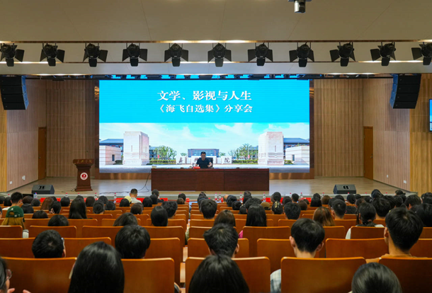 图书馆学术报告厅,曾获全国“五个一工程奖”、人民文学奖等诸多殊荣的金牌编剧、小说家海飞带着他的新书《海飞自选集》受邀做《文学、影视和人生》主题讲座,台下是一张张年轻的面孔,现场座无虚席。