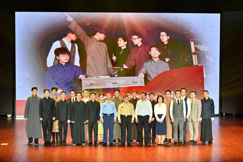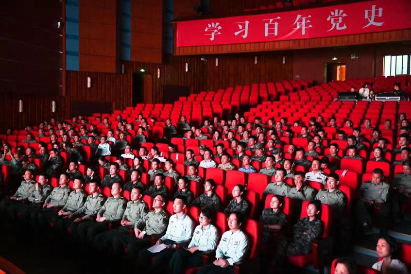 台上表演的是学生,台下观看的是军人。据嘉兴军分区相关负责人介绍,此次组织官兵观看原创话剧《初心》,是为了更好地利用嘉兴本地的红色资源,为官兵们的党史学习提供更加新颖、生动的形式。