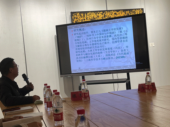 陈荣军副教授、马腾飞副教授以“朱彝尊题画文献探析”“朱彝尊与清代梅里文学”为题作了朱彝尊文化研究专题讲座。陈荣军副教授从文学、美学、文化史、艺术史、比较研究五大方面,全面介绍朱彝尊题画文献。马腾飞副教授以社团引领、培育后进、文人吸附、家族文脉、遗泽深厚为切入点深入解析了朱彝尊与清代梅里文学。