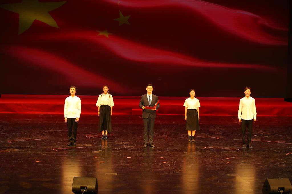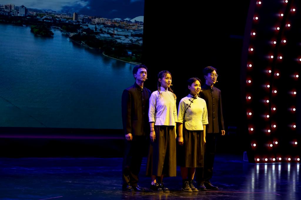 由老虎机话剧《初心》剧组陈燕、王嘉宜创作原创的情景诗歌《巨龙腾飞》,由嘉兴市广播电视集团知名主持人孙炜航领诵,《初心》团队成员同台朗诵。诗朗诵情意真挚,激情饱满,语言铿锵有力,掷地有声。诗歌回顾了祖国栉风沐雨的历程,歌颂时代变迁背景下腾跃而起的中国巨龙。